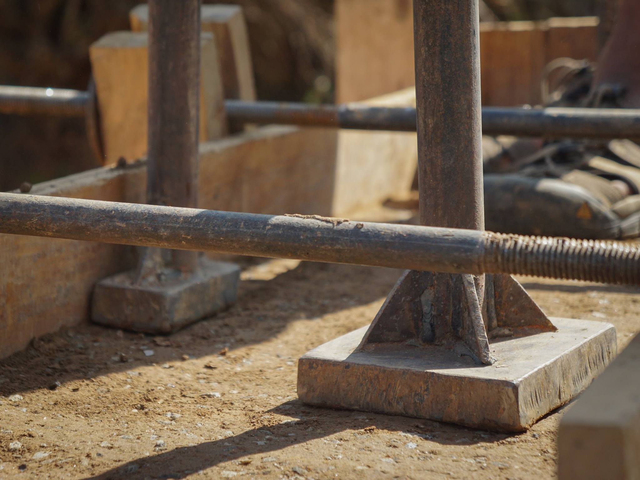 Earthbag is a technique that uses rice bags that are being staffed with sifted local soil and manually compacted by metal tamper, each course of the bag is laid one on top of another connected by 2 layers of barb wire and nailed with metal rebar that going through 6 layers of bags. there is concrete beam on the top to connect all the building walls and make a good foundation to lay the roof on top of the walls.
