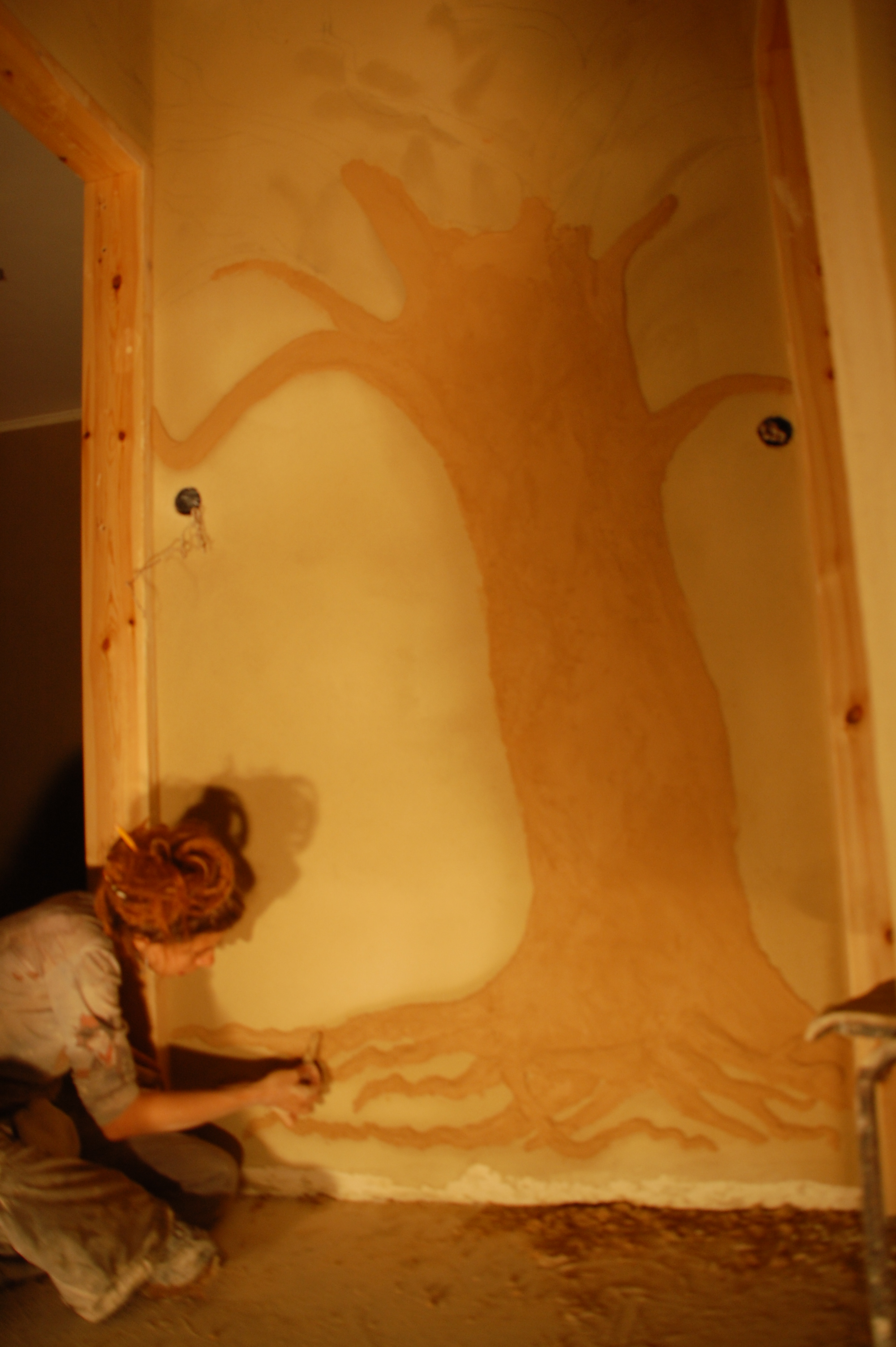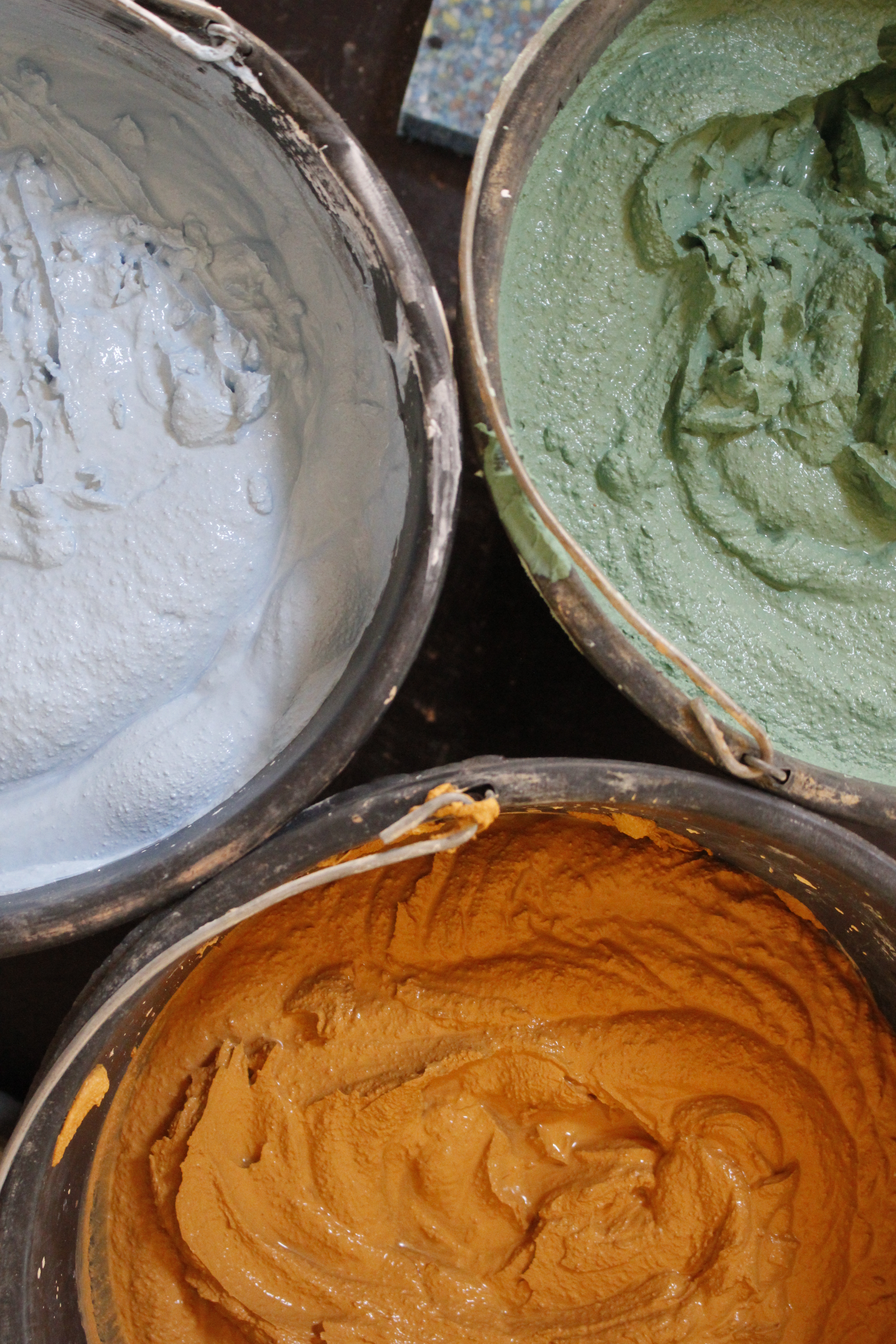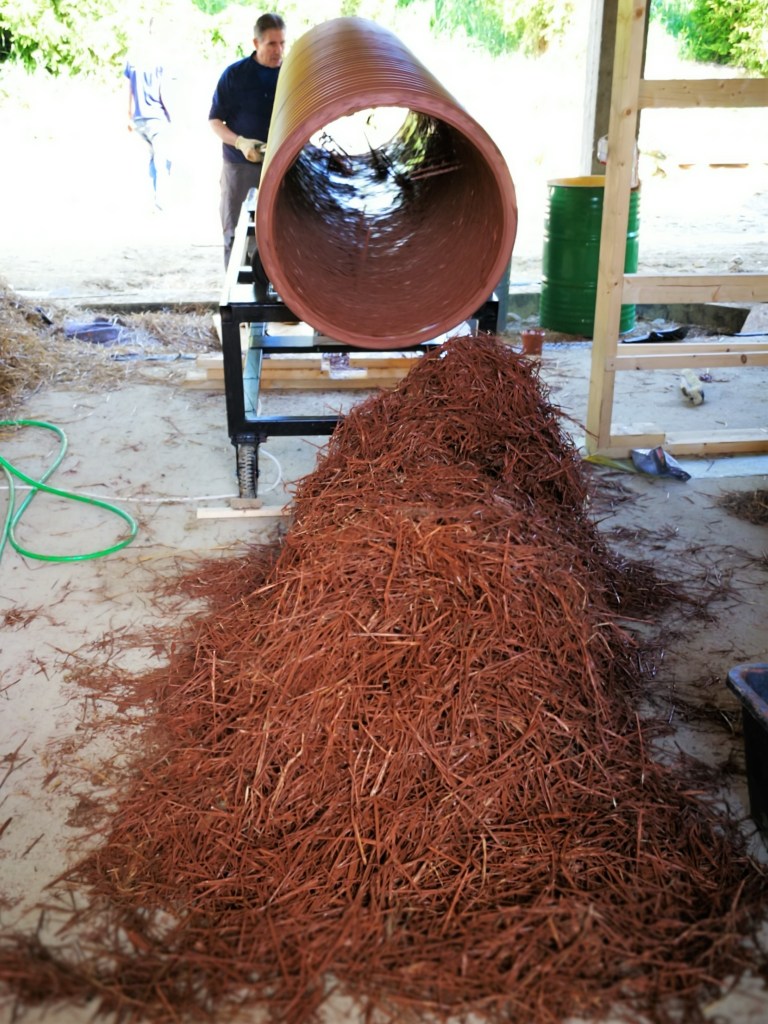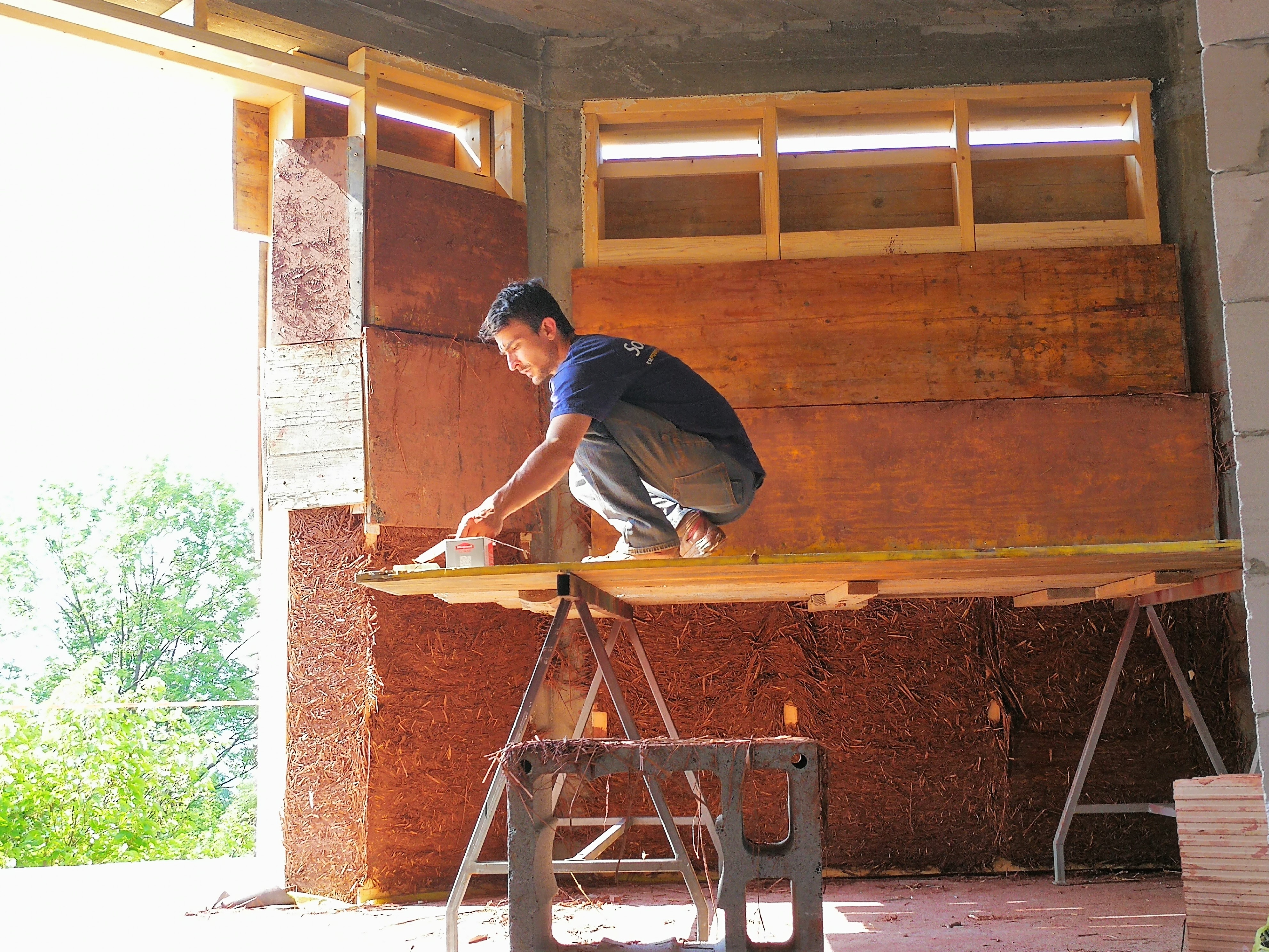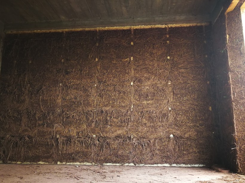 Straw Clay is a mixture of long wheat straw and a clay slip (thick soup texture) that being cast into temporary frames.