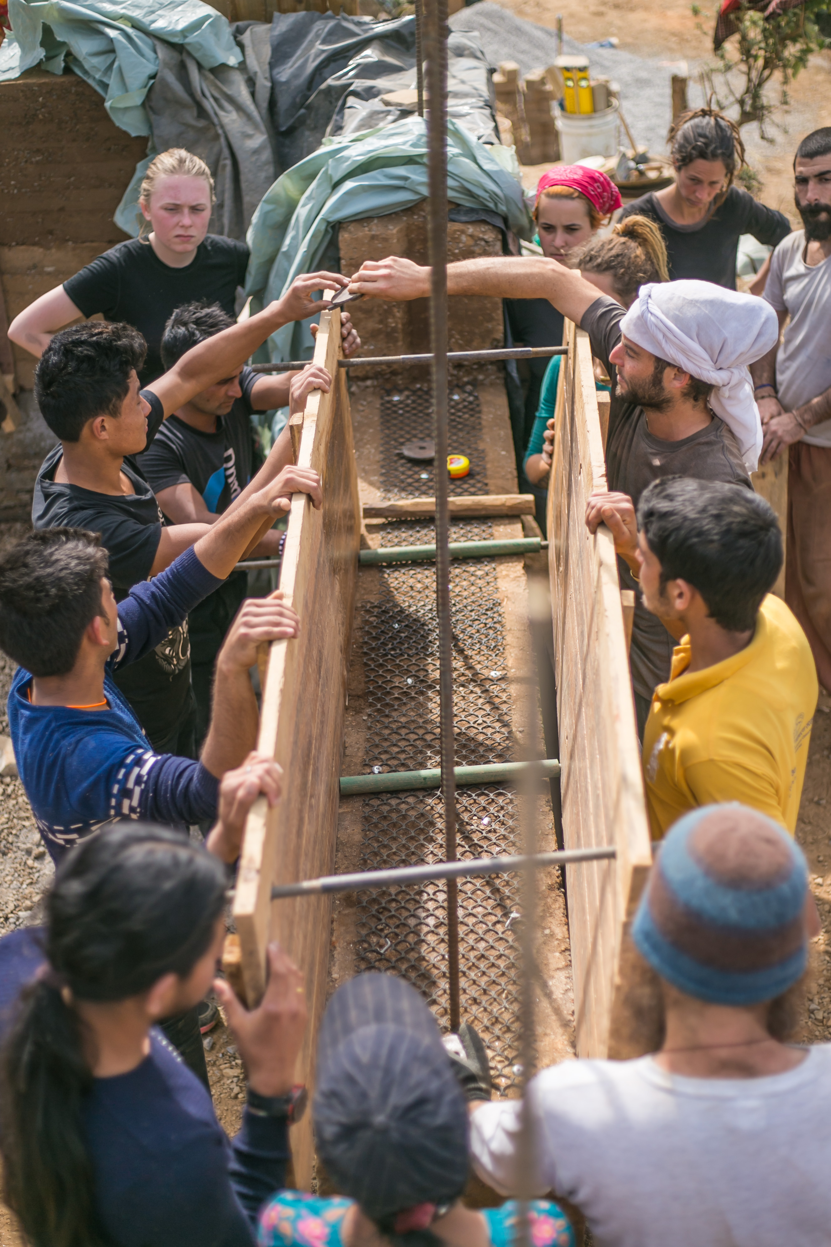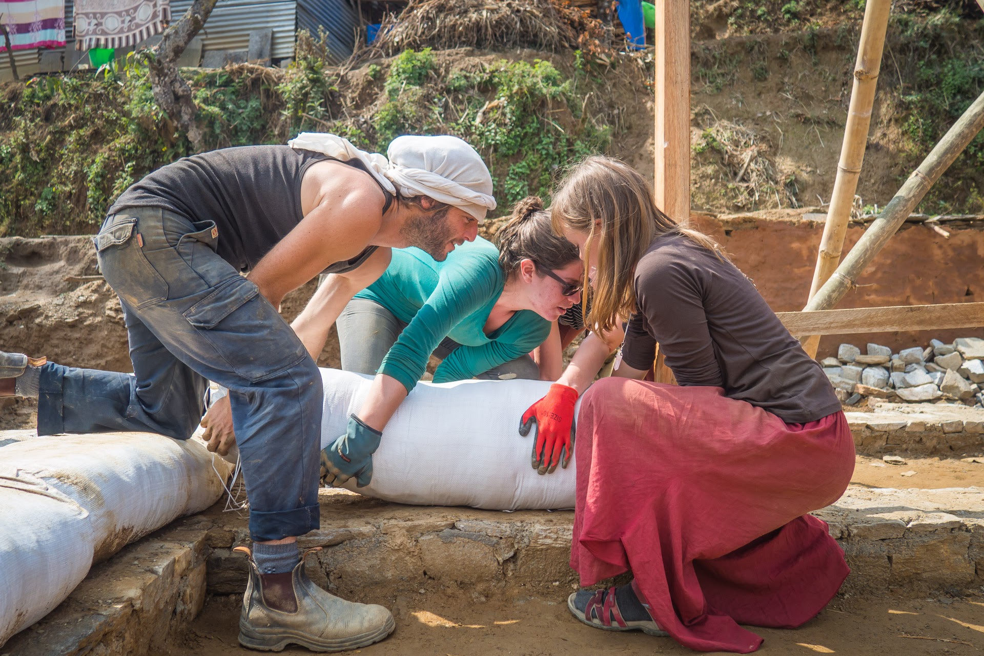 we trained and created a unique team of local community members with international volunteers supervised by experienced earthbag builder.
